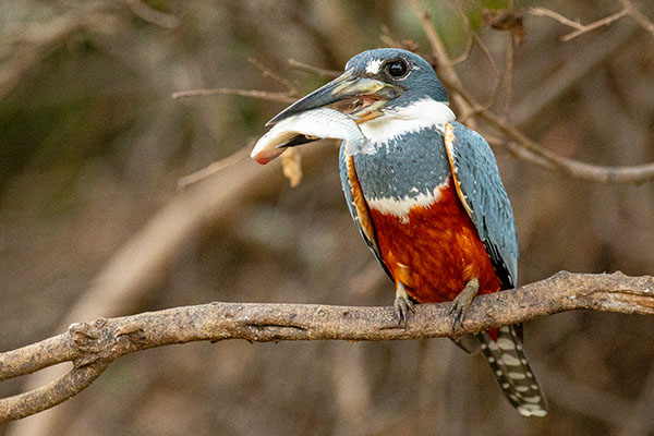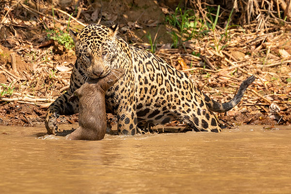 Estaremos en los pantanales frente a frente con el yaguareté, el felino más grande de América. Viviremos la emoción de seguir sus pasos para verlo en completo estado salvaje, persiguiendo y cazando a sus presas. Iremos en busca de tener el privilegio de observar familias de nutrias gigantes, pescando y jugueteando en familia. En cada recorrido por el río nos cruzaremos con carpinchos, yacarés alimentándose al amanecer, los gigantescos y esquivos tapires y una gran variedad de aves, construyendo sus nidos y cuidando de sus pichones. Desde nuestras embarcaciones nos sorprenderan las aves que pescan arrojándose en picada al agua para capturar su alimento.